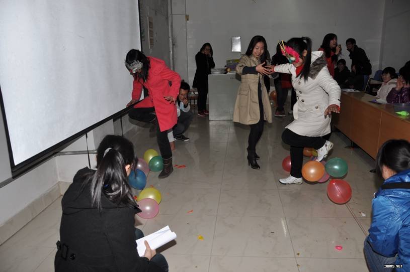 精彩的“遮眼踩气球”比赛
