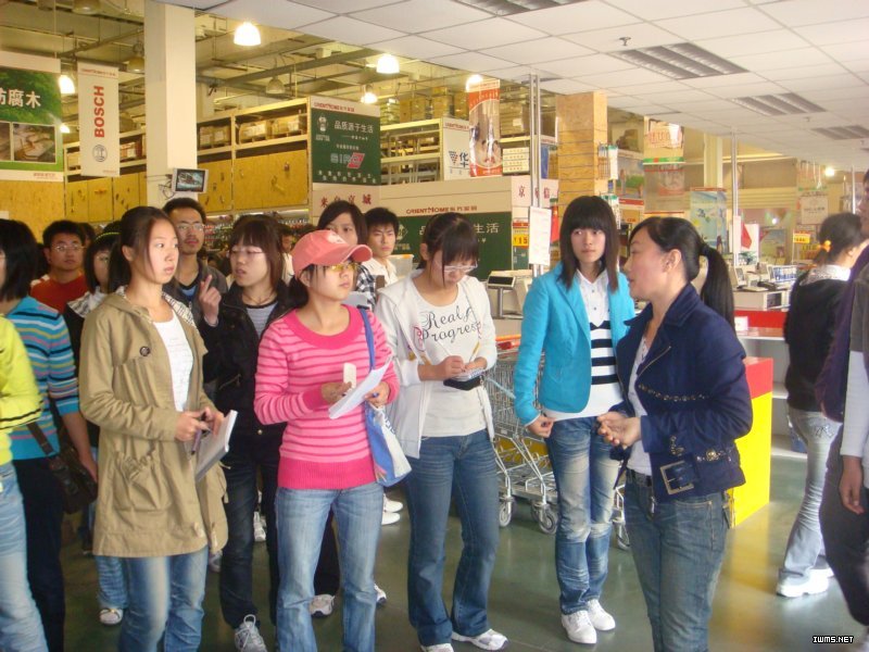 在易初莲花超市,同学们在老师的带领下现场学习了商品端架及堆头的陈列特点及陈列方法;在东方家园建材超市,同学们向人力资源部经理请教了建材超市的营运特色与主要服务项目;此外,同学们还参观了苏宁电器物流中心及新华书店集团配送中心,了解了配送中心的工作内容与重点,专业课教师为员工现场讲解了配送中心单据的传递流程。