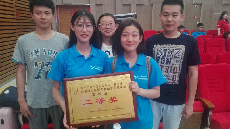 本次比赛吸引了来自山东省高职院校44支队伍参加。比赛采用新商战电子沙盘与手工沙盘相结合作为竞赛平台,经过2天紧张激烈的角逐,公司派出由薛涛老师指导的杨超、罗梦克、赵晓丹、王资涵、徐媛媛同学代表队,荣获了二等奖好成绩。