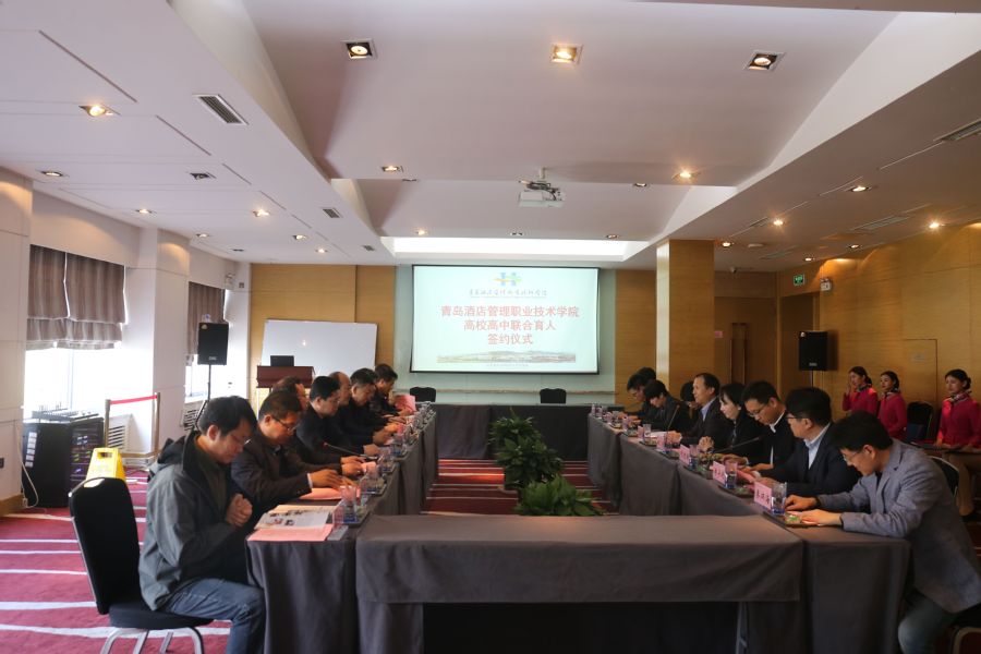 24日下午,签约仪式在旅游与酒店管理公司实训中心多功能厅举行。莱州十三中董事长林凤桐、莱州六中董事长张辉庆、栖霞四中董事长王贤林等十多位高中董事长及公司副经理王建宝、人才招聘办公室主任冷雪艳等参加此次研讨会。会议由公司党总支书记曲萌主持。