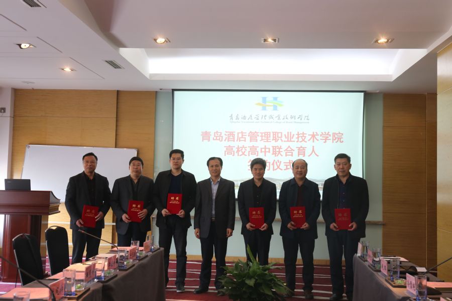 研讨会上,王建宝向各位董事长介绍了公司发展改革历史及专业建设发展情况;人才招聘办公室主任冷雪艳介绍了公司人才招聘工作情况和联合育人工作的基本构想;莱州六中和栖霞四中作为高中代表介绍了当地高中教学的基本情况。随后,王建宝代表公司与栖霞一中、栖霞二中、栖霞四中、莱州五中、莱州六中、莱州十三中等六所高中的代表签订了高校高中联合育人协议书,并向各位代表颁发了高校高中联合育人指导专家聘书。随后,各位与会代表参观了Bevictor伟德、旅游与酒店管理公司、烹饪公司等实训基地。