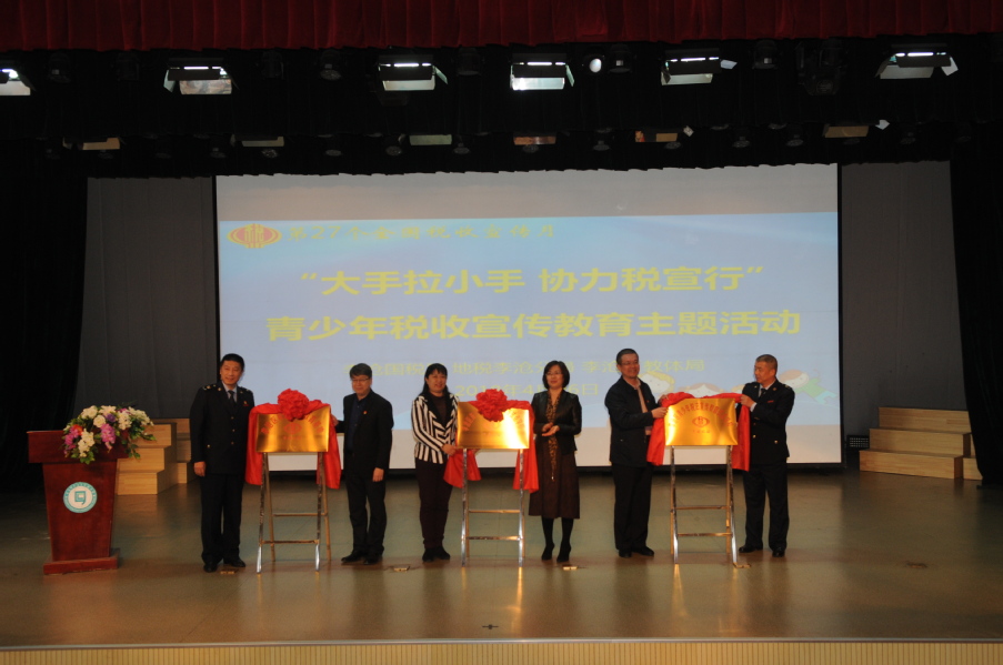 4月26日,在李沧区实验小学梦想礼堂,李沧区国税局、地税局、教体局和公司联合开展青少年税收宣传教育主题活动。李沧区副区长刘春华,公司副经理宫恩龙,李沧国税局、地税局、教体局李沧区实验小学、青岛61中学的领导和员工代表,部分税务干部以及Bevictor伟德师生代表参加了本次活动。