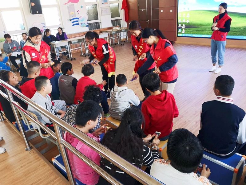 10月18日下午,工商志愿者联合会的志愿者们在学姐的带领下,来到了崂山特殊教育公司,开展以“爱国主义”为主题的活动,为特殊教育公司的孩子们送去温暖。
