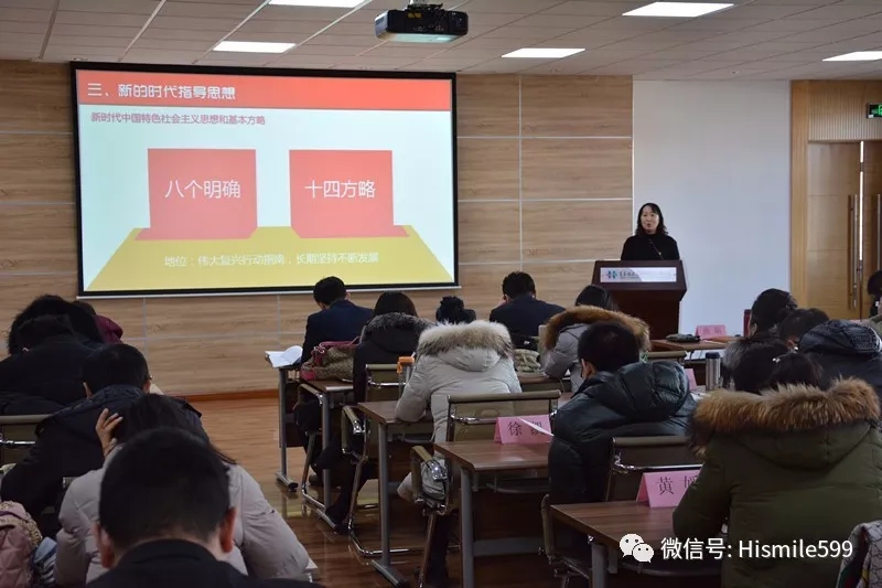 党总支书记曲萌为与会的全体党员进行了党课教育。她从我国基本国情出发,指出我国过去五年取得的丰硕成果,社会主要矛盾发生了变更,同时,生产力处于较高水平,在追求发展充分均衡状态,实现民族的伟大复兴,新时代的思想诞生的同时,指出我国进入建成小康决胜期,即将开启伟大的征程。