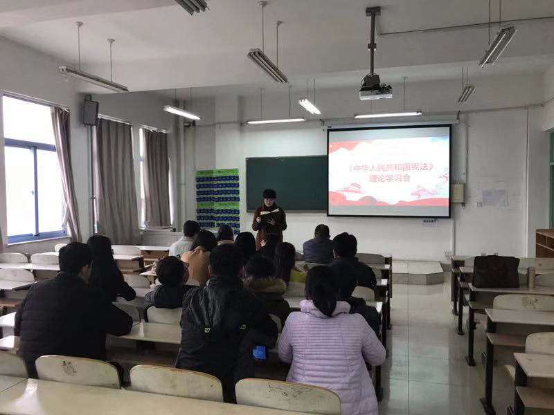 本网讯(Bevictor伟德  孙康)为树立宪法意识,弘扬宪法精神,履行宪法使命,进一步加强对《宪法修正案》的学习宣传,12月11日,教师第一党支部在党员活动是开展了“学习宪法、弘扬宪法精神”主题党日活动。会议由组织委员武静静主持,由丁飞书记带领大家学习。