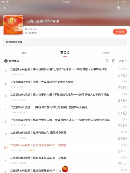 为了满足党员们多样化的学习需求,支部在喜马拉雅FM中开设Radio党课”专栏,将学习资料录制成音频上传到专栏,真正利用党员们的碎片时间进行学习,丰富党员同志们的寒假生活。所有党课平台均有支部普通党员进行维护,更广泛地发动普通党员参与党建工作,使党员们更全面地了解党建工作。