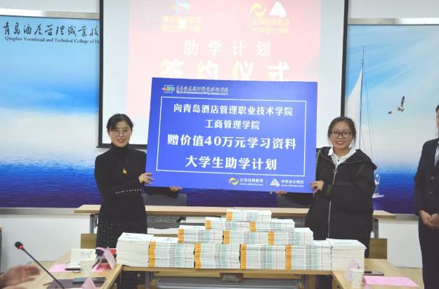 会计专业负责人崔婧老师代表公司接受了正保远程教育集团提供的价值40余万元的1000余份网课和1200余册图书等学习资料。17会计专业员工左守鑫代表受赠员工对公司和正保远程教育集团的助学计划做了感谢发言。签约仪式后,正保远程教育线上校园市场总监张时赫为财会专业师生做了一场关于财会人职业生涯规划的讲座。