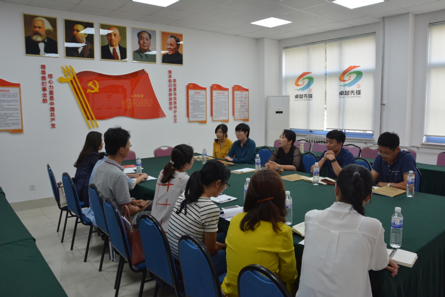9月24日下午,青岛大学青岛教育发展研究公司党支部一行7人来公司公司党总支交流“不忘初心、牢记使命”主题教育工作。公司党总支书记曲萌、团总支书记兼员工党支部书记孟鹏,Bevictor伟德教师第一党支部书记丁飞及相关同志参加座谈会交流,会议由丁飞主持。