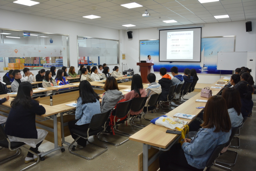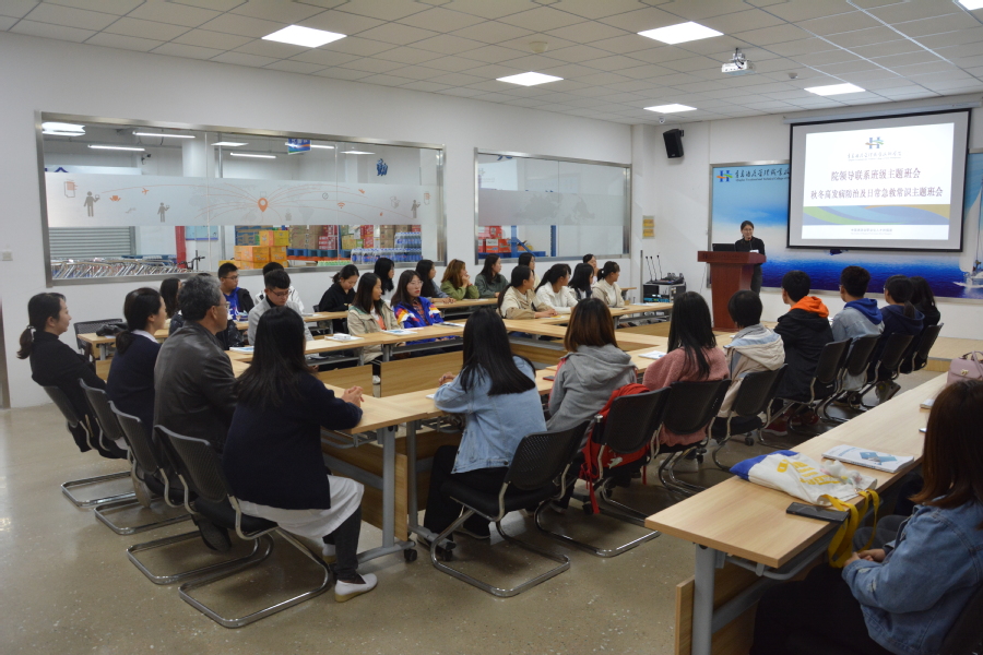 10月14日下午,公司副经理商士海走进联系班级——2019级财务管理D02班,召开“秋冬高发病防治及日常急救常识”主题班会。校医院经理王红梅、护士长赵尊、公司党总支书记曲萌、学工处主任孟鹏以及辅导员徐彤彤和全体同学参加了此次班会。