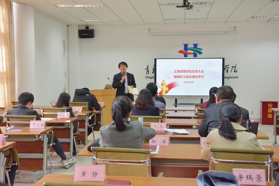 会上,全体党员共同观看“灯塔大课堂”第十四课由中共中央党校(国家行政公司)教授、博士生导师刘春讲授的“深入学习领会《习近平谈治国理政》第三卷”,帮助大家进一步学懂弄通《习近平谈治国理政》第三卷的重要论断及丰富内涵。随后,公司向8-10月份在“学习强国”中学习积分名列前茅的党员,颁发了“学习强国之星”证书,以示鼓励。工商管理公司党总支书记郭学道在最后的讲话中,一是回顾总结了前一阶段公司党建工作开展情况,并向全体党员对公司发展的付出表达谢意。二是对新补选的党总支及支部委员们提出要求,希望大家既要抓好党务,也要业务带头。三是勉励全体党员要保持干事创业热情,发扬团队精神,在“双高”建设背景下的教学管理工作中继续创先争优。