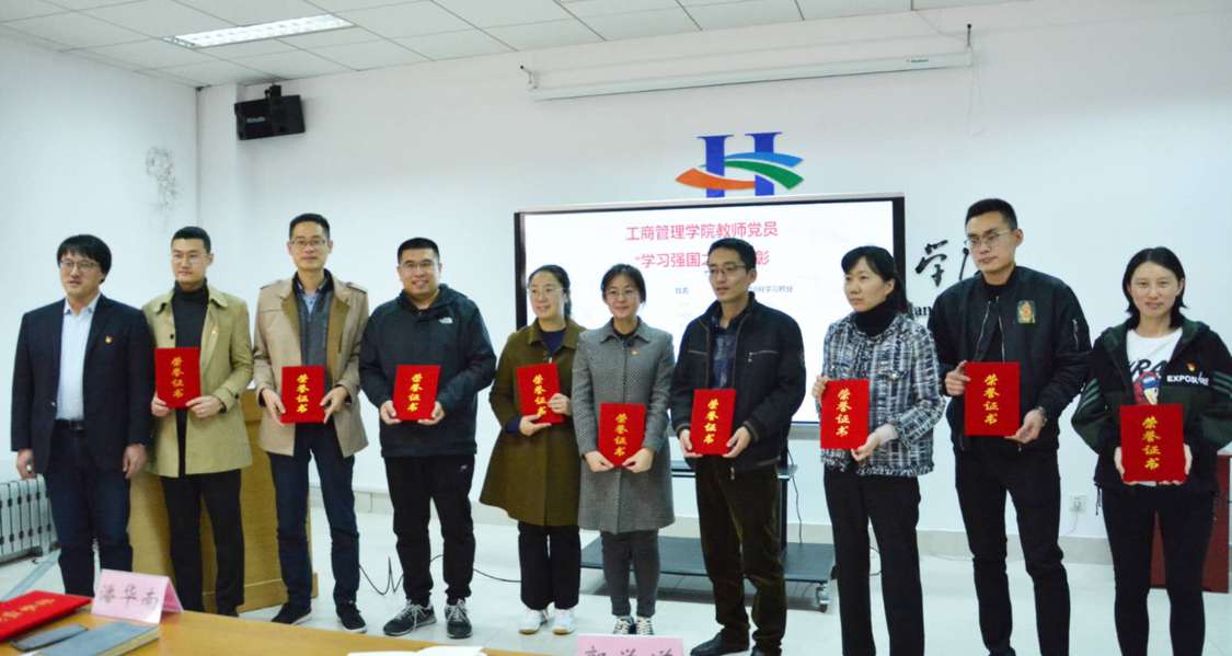 会上,全体党员共同观看“灯塔大课堂”第十四课由中共中央党校(国家行政公司)教授、博士生导师刘春讲授的“深入学习领会《习近平谈治国理政》第三卷”,帮助大家进一步学懂弄通《习近平谈治国理政》第三卷的重要论断及丰富内涵随后公司向8-10月份在“学习强国”中学习积分名列前茅的党员,颁发了“学习强国之星”证书,以示鼓励工商管理公司党总支书记郭学道在最后的讲话中,一是回顾总结了前一阶段公司党建工作开展情况,并向全体党员对公司发展的付出表达谢意。二是对新补选的党总支及支部委员们提出要求,希望大家既要抓好党务,也要业务带头。三是勉励全体党员要保持干事创业热情,发扬团队精神,在“双高”建设背景下的教学管理工作中继续创先争优。
