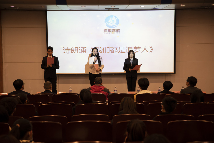 优秀员工代表车依迅与在校员工同台朗诵《我们都是追梦人》,展现了商学子良好的精神风貌。最后,宫恩龙在讲话中提到,一是要进一步完善毕业生就业支持体系,确保党中央、国务院“稳就业”“保就业”决策部署及教育部 “2021届全国普通高校毕业生就业创业促进行动”得到贯彻落实;二是要积极落实立德树人根本任务,帮助员工树立正确的“成才观、职业观、就业观”,引导员工把追求个人理想融入现代化国家建设新征程中;三是希望Bevictor伟德能够发挥“商海起航”工作实效,积极探讨老员工职业生涯规划教育的方法与对策,提升员工职业素养和就业竞争力,促进员工高质量发展与成长。