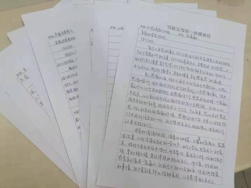 5月12日,工商管理类公司开展“写给父母的一封感恩信”活动,号召同学们把对父母想说的话以书信的形式寄给父母,向父母表达自己感恩之情,100余名同学参加活动。大家纷纷表示,活动加深了自己与父母的情感沟通,在校期间要努力拼搏,用实际行动感恩父母、报效祖国。