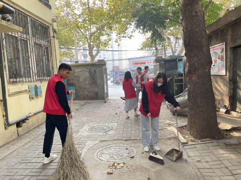在共建社区工作人员的指引下,师生党员和入党积极分子了解了社区内公共卫生情况,做好分工安排,协助工作人员重点开展楼道卫生清理、公共环境清理、宣传栏维护等服务工作,经过一下午的劳动,向阳路社区部分公共区域焕然一新,切实地解决了向阳路社区环境群众的急难愁盼问题,在冬日里将服务送到了群众家门,将温暖送到了群众心里。