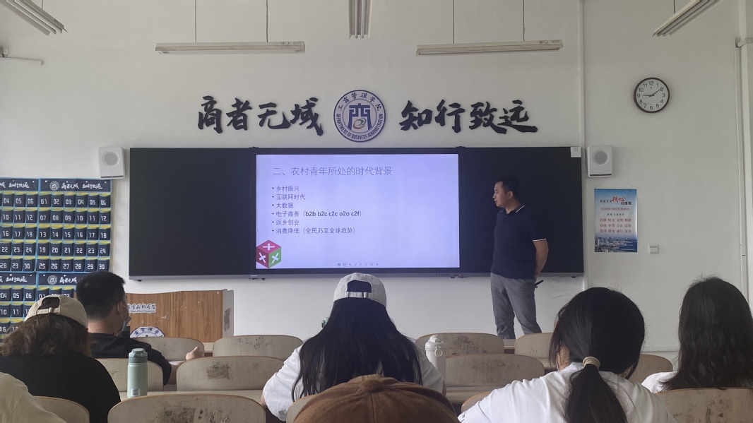 讲座中,董老师从阐释乡村振兴战略目标入手,为同学们介绍了农村青年所处的时代背景,进而介绍了近年来农村快递业的蓬勃发展,董老师分享了关于农村青年寄递服务需求的多组调研数据,并对如何满足农村青年寄递服务需求进行了案例分享,最后围绕乡村振兴战略提出了寄递服务改进与提升策略。