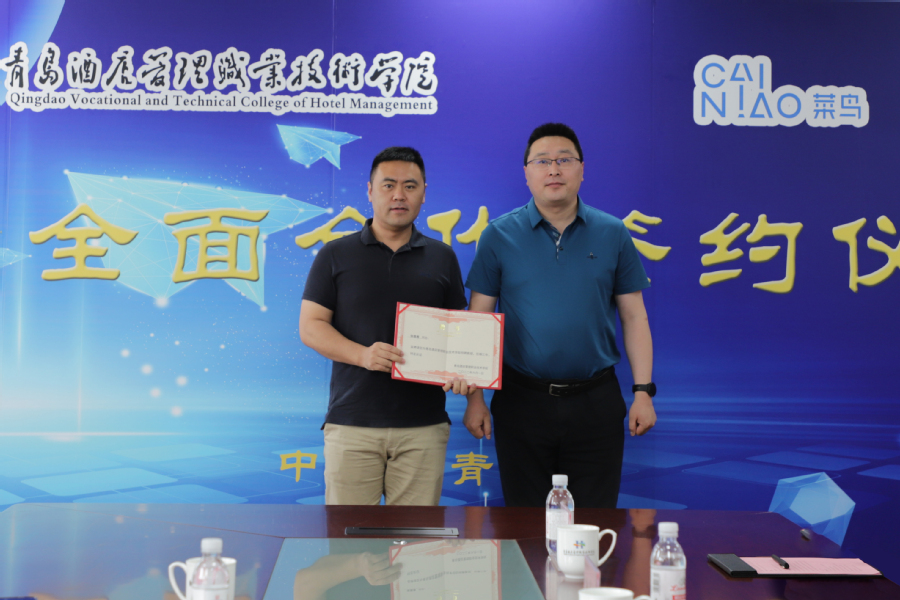 6月1日,公司与菜鸟网络科技有限公司校企全面合作签约仪式在行政楼三楼会议室举行。菜鸟校园全国高校合作总经理张德骞、北部大区运营总监聂志华、山东区域总监张忠全,公司经理姜玉鹏参加仪式。