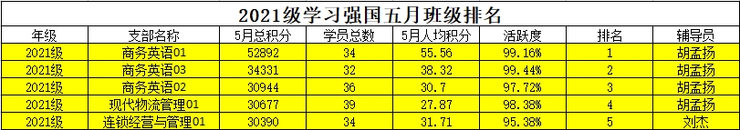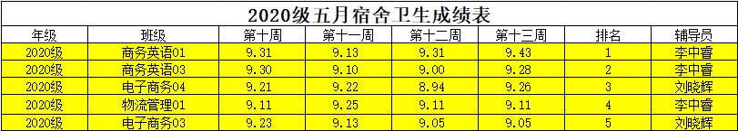 为培养同学们集体主义精神,促进大家养成良好的行为习惯,公司开展“流动红旗”评比活动,现公示五月流动红旗获得班级名单分数排名,希望各班同学继续发扬优点,改正不足,提高自我管理、自我教育的意识,推动公司良好发展。