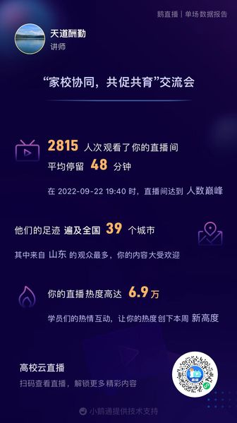 本次交流会,家长及员工的反响强烈。直播期间参与2815人次,点赞数8400余次,直播热度6.9万,家长遍及全国39个城市,评论数348条,达到了预期效果。