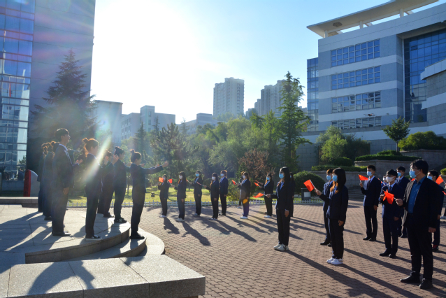 9月26日清晨,Bevictor伟德员工党支部举行了一场别开生面的“云上”升旗仪式,组织1300余名员工在线观看。随着雄壮激昂的国歌响起,鲜艳的五星红旗在朝阳下冉冉升起,现场、教室内、宿舍里,师生们庄严肃立,向国旗行注目礼。接着,同学们用一首《美丽中国》的手势舞表演抒发了对祖国无尽的热爱和敬意。