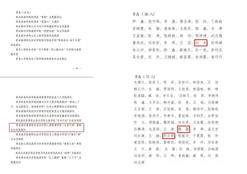 近日,中共山东省委宣传部、山东省文明办、山东省教育厅、共青团山东省委、山东省员工联合会发布《关于“调研山东”——2022年山东省大中专员工志愿者暑期“三下乡”社会实践活动的通报》,对全省在“三下乡”工作中表现优秀的集体和个人进行通报表扬。