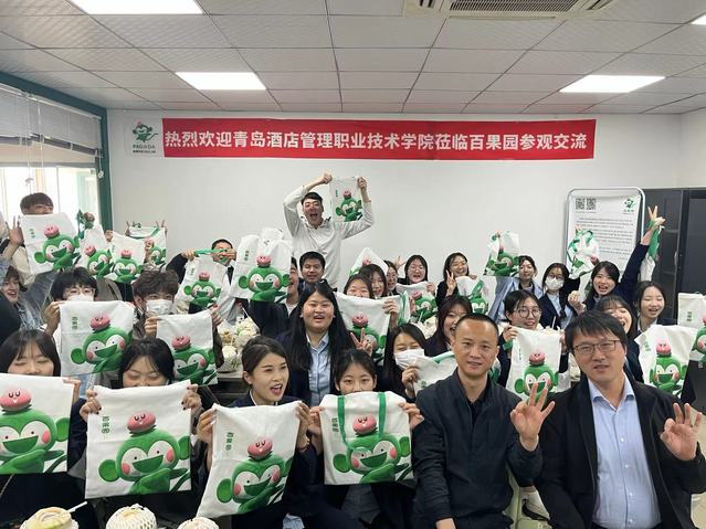 活动中,公司党总支书记郭学道介绍了公司的基本办学情况,感谢公司对公司就业工作的支持,勉励同学们要主动了解研究新零售业的前沿信息及商业发展模式。青岛百果园食品有限公司区域总经理张云星致辞欢迎,详细介绍了百果园公司发展规划、运营管理、仓储管理、岗位规划等情况。随后,双方共同参观学习了公司的仓储物流环节。