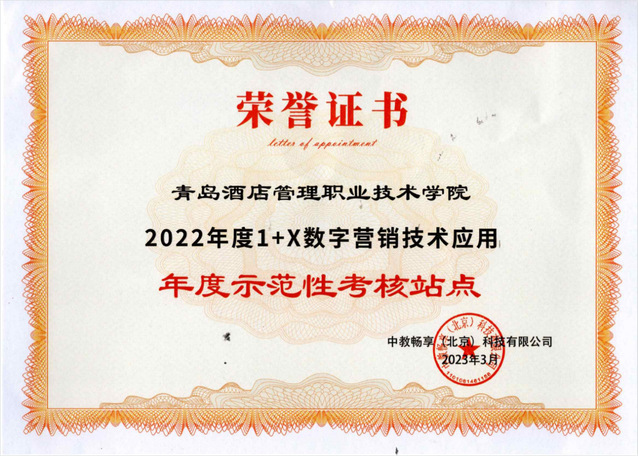 4月14日,由教育部认定的国家职业教育培训评价组织——中教畅想(北京)科技有限公司主办的“1+X”证书试点工作表彰会线上召开,公司获评2022年度1+X数字营销技术应用年度示范性考核站点。
