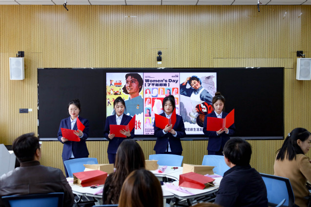 活动在员工热情洋溢的朗诵声中拉开帷幕,公司党总支书记郭学道和经理潘华南共同向全院女教师致以节日问候和美好祝愿,对女教师们长期躬耕教坛、潜心教书育人的辛勤付出表示衷心感谢。