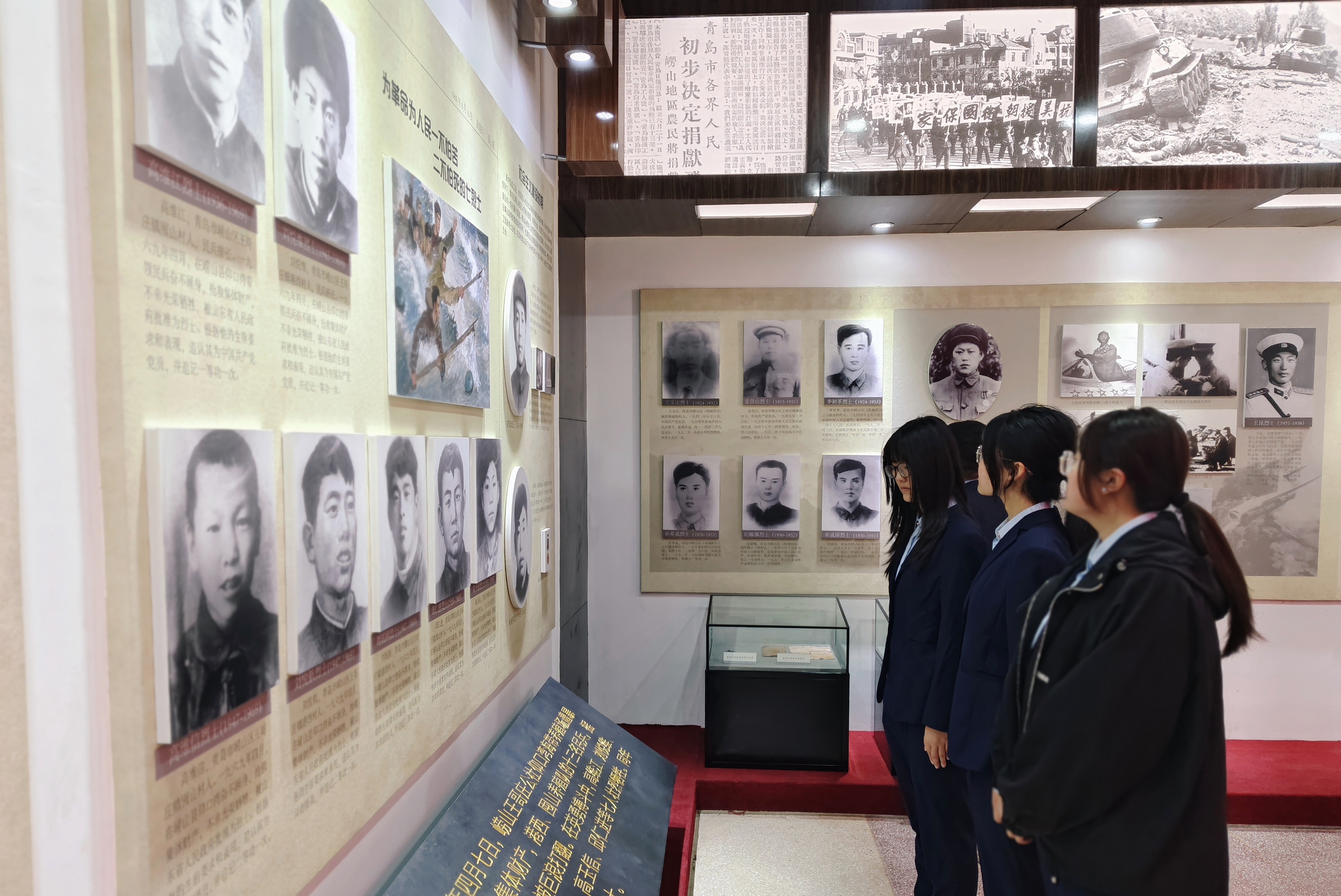 仪式完毕,师生跟随讲解员指引前往烈士纪念堂,聆听先烈故事,瞻仰先烈遗物,更为深刻具体地了解学习青岛地区自辛亥革命至解放战争时期的革命斗争史,深切感受革命先烈们浴血奋战的无私与忠诚。