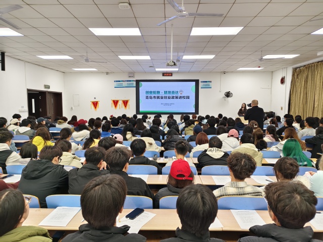 活动伊始,季鑫淼老师系统介绍了青岛市就业创业相关政策。她围绕就业支持、人才引进、创业扶持、创业培训及创业大赛等多个维度,详细解读了青岛市构建的“一体两翼、八轮驱动”全链条创业服务体系。内容详实、条理清晰的讲解,帮助同学们全面了解了青岛在促进青年就业创业方面的有力举措和丰富资源。